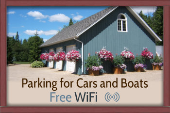 Each guest room has its own name and unique décor. The Chicken Coop, The Stable, The Doghouse and The Garden all have an en-suite bath and a themed design. Look at some pictures of the rooms in our Picture Gallery.